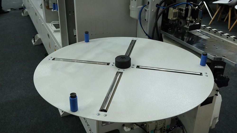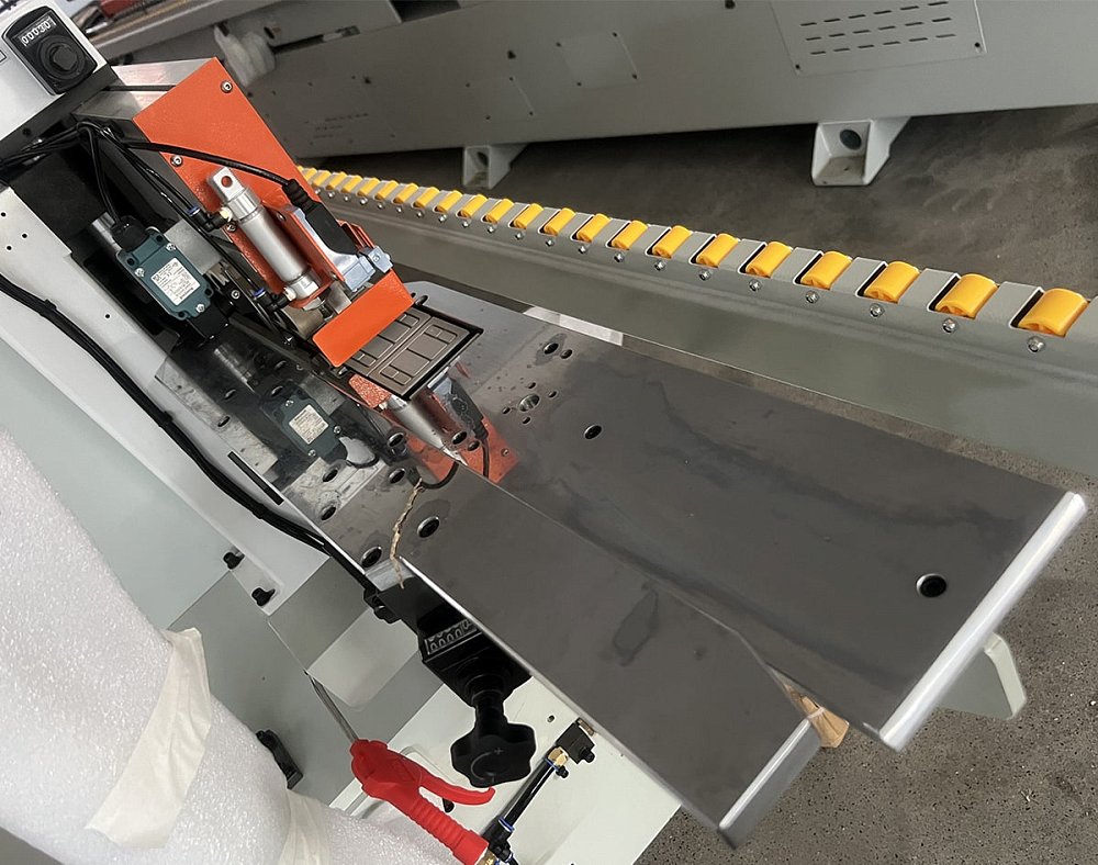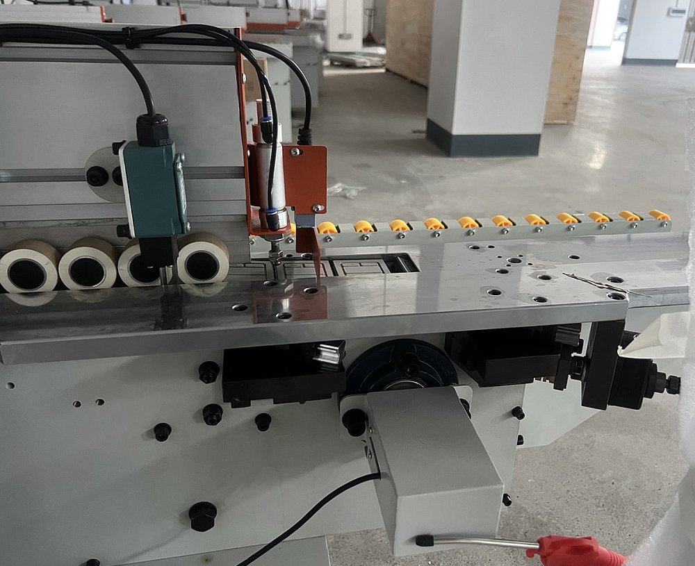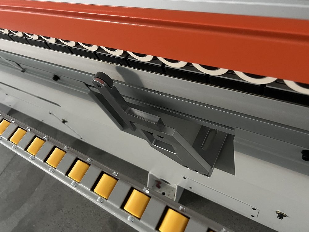 - В зоне работы узлов дополнительно установлены поддерживающие ролики для более точной фиксации узких заготовок.