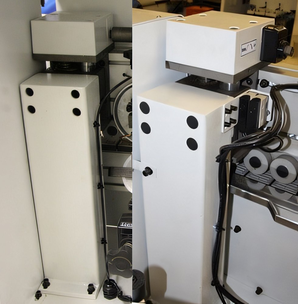 Два двигателя противоположного вращение с автоматическим подводом/отводом в зону обработки убавляются с помощью пневмоцилиндров: