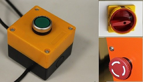 - Кнопка аварийной остановки на пульте управления и задней части станка;