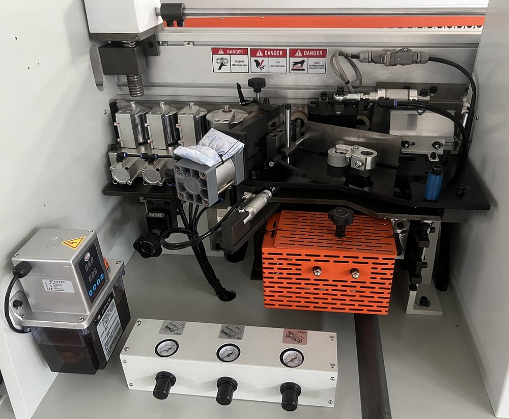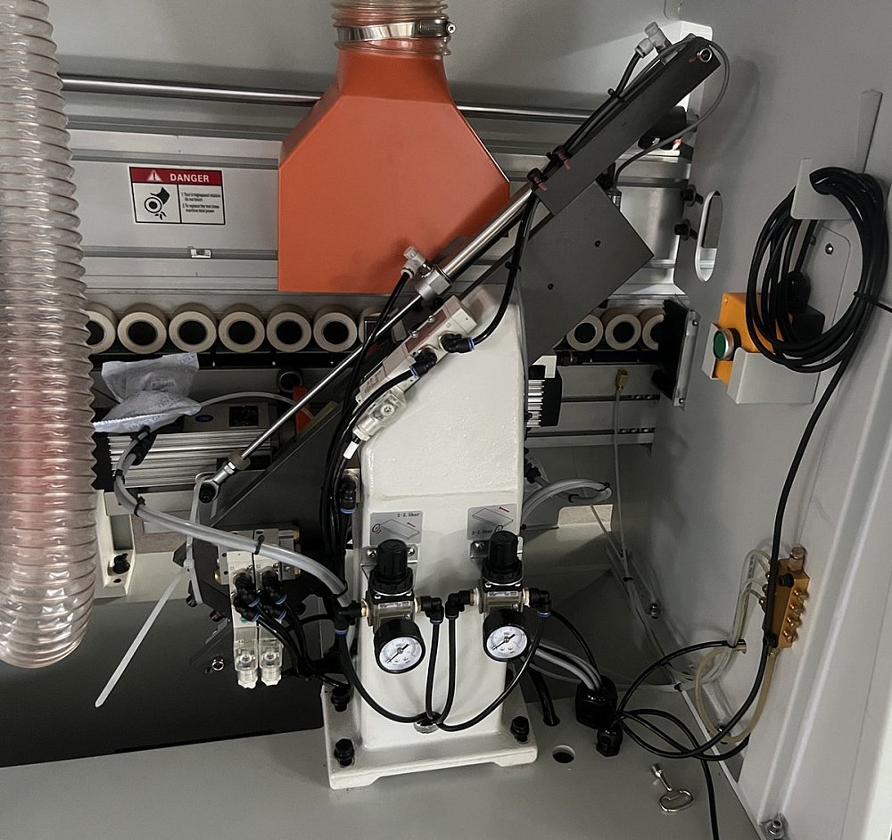 - Боковой роликовый прижим для кромочного материала.