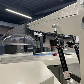 Большой аспирационный кожух удобно регулируется по высоте газлифтами. Обеспечивает безопасную работу на станке и качественное пылеудаление из зоны раскроя даже при пилении под углом.