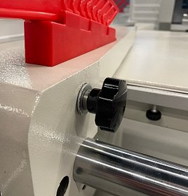Для удобства настройки параллельный упор оснащен винтовым механизмом точной регулировки размера.