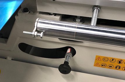 Рукоятка настройки подрезной пилы по вертикали удобно расположена в задней части станка.